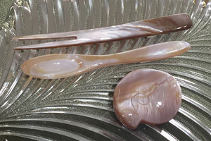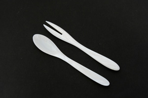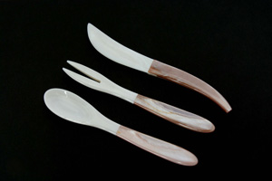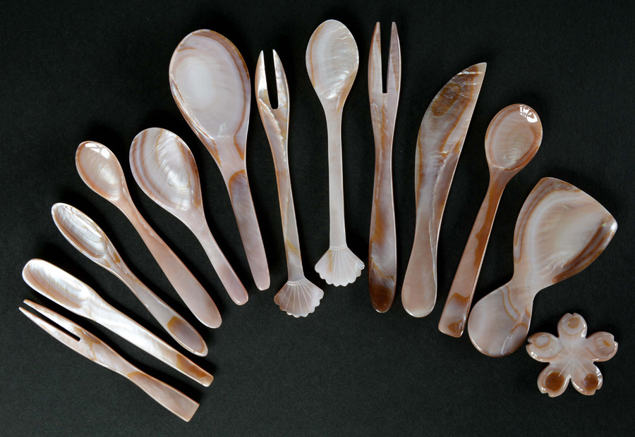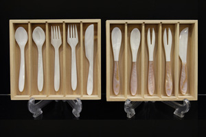 左:白貝スプーン・フォーク・ナイフ5点